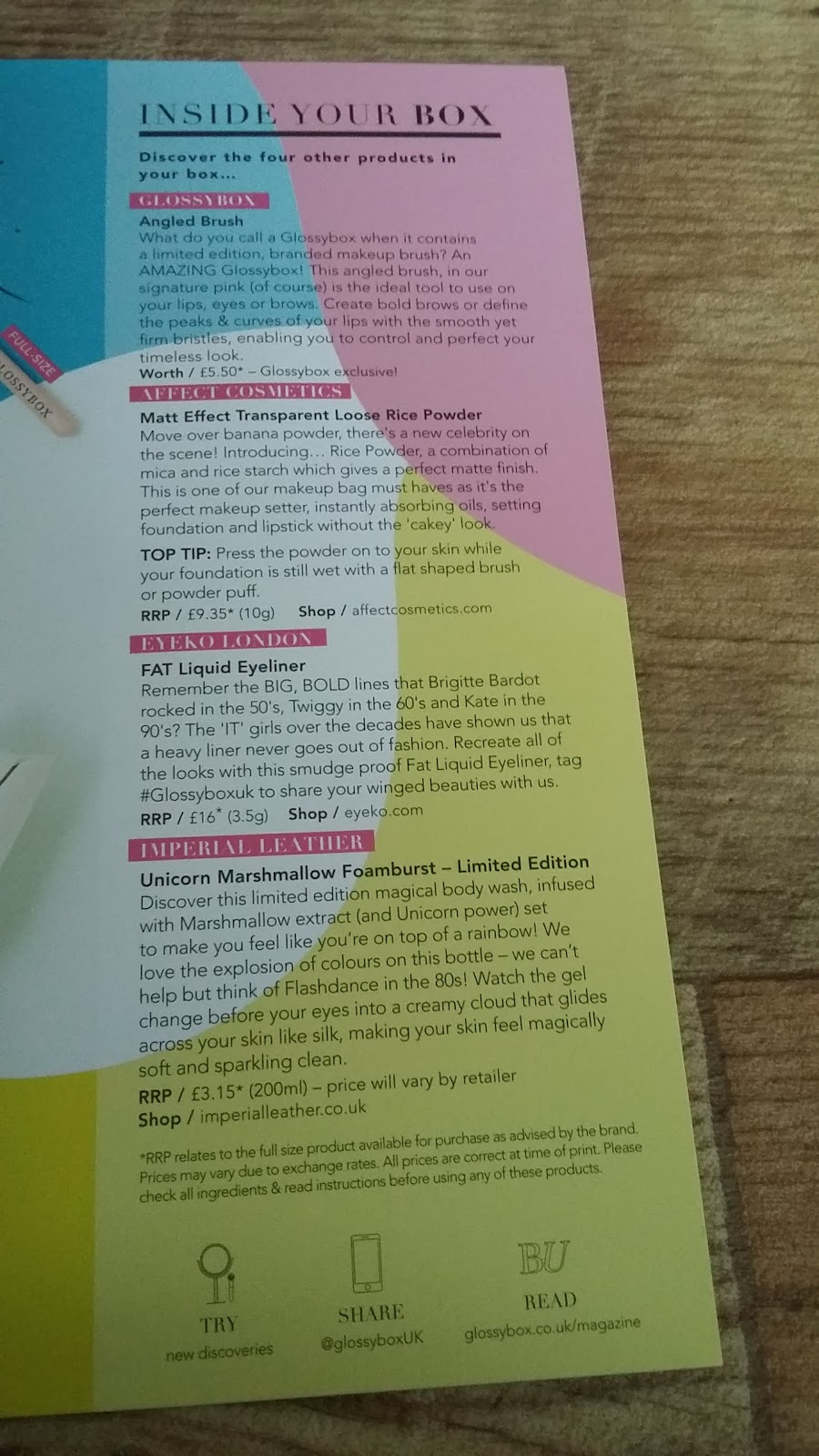 I will mention that the information card (On what products you get in your box) makes perfect sense too. As one of the boxes previously there was a lot of confusion caused on how many products, and what products, you should have received. This is what the product card shows by the way.